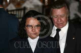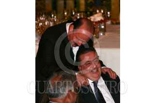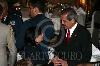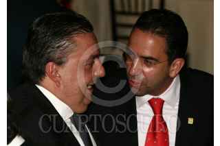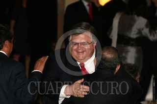 MÉXICO D.F., 09MARZO2009.- El presidente de la mesa directiva de lacamara de diputados, Cesar Duarte Jacquez, saluda al al titular de la SEGOB, Fernando Gómez Mont, durante a la cena de honor que el gobierno de México realizó al presidente de Francia Nicolás Sarkozy y a su esposa Carla Sarkozy. FOTO: SAÚL LÓPEZ/CUARTOSCURO.COM