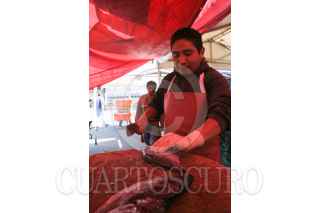 MÉXICO, D.F., 10MARZO2009.- En el mercado La Viga, las actividades diarias transcurren con normalidad ya que no se ven afectados por la crisis económica, y se estima un incremento en las ventas en esta época de cuaresma. FOTO: ENRIQUE ORDÓÑEZ/CUARTOSCURO.COM