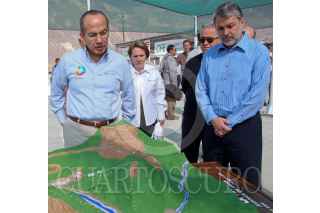 GUADALAJARA, JALISCO, 11MARZO2009.- Emilio González Márquez, gobernador de Jalisco y el Presidente de México, Felipe Calderón Hinojosa, durante el recorrido a la presa la Yesca Desvió del rió Santiago e inicio de construcciones de la cortina. FOTO: ALFREDO GUERRERO/CUARTOSCURO.COM