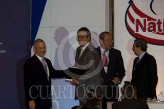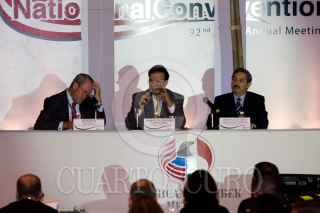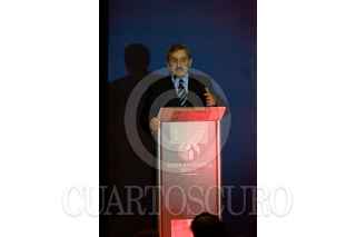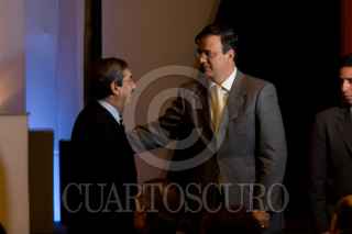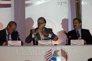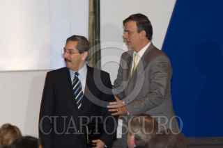 MÉXICO D.F., 11MARZO2009.- Marcelo Ebrad Casaubón, jefe de Gobierno del D.F. acompañado de Roberto Newell del Instituto Mexicano para la Competitividad y Natividad González Paras, Gobernador del Estado de Nuevo León, durante su participación de la 8a. Convención de la American Chamber. FOTO: GUILLERMO PEREA/CUARTOSCURO.COM
