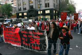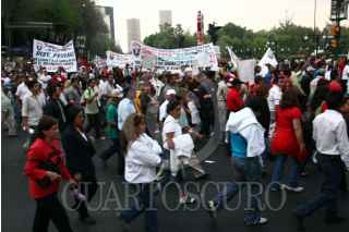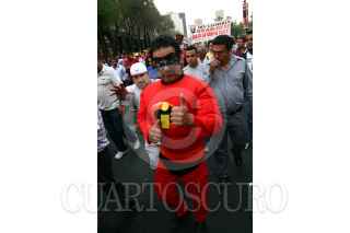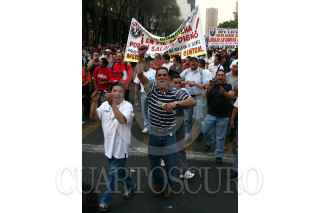 MÉXICO, D.F., 11MARZO2009.- Miles de integrantes del Sindicato Mexicano de Electricistas, marcharon del monumento a la revolución hacia el zócalo capitalino, exigiendo el incremento salarial de 17.2%. FOTO: SAUL LOPEZ/CUARTOSCURO.COM