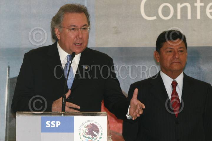 MÉXICO, D.F., 12MARZO2009.- La Policía Federal Preventiva presentó a tres presuntos delincuentes vinculados con el narcotraficante Ismael Zambada, alias "El Mayo". Dos de los detenidos son policías ministeriales de Sinaloa y se les decomisaron armas de alto poder, calificado como "armamento de guerra". FOTO: SAÚL LÓPEZ/CUARTOSCURO.COM