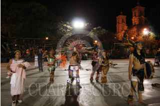CHILPANCINGO, GUERRERO, 13MARZO2009.- Celebración del inicio del Año Nuevo Mexica 10 Calli (diez casa) que llevaron a cabo la noche del miércoles integrantes de la organización indígena "Calpulli Tecuanichan" y del grupo de danza "Halcon Rojo" en el zócalo de la ciudad capital. FOTO: OSCAR ALVARADO/CUARTOSCURO.COM