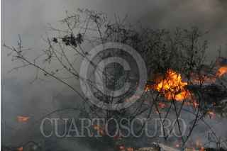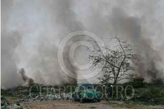 VILLAHERMOSA, TABASCO, 13MARZO2009.- Un incendio se registró en el basurero de Lomas de Caballo, el cual se localiza a siete kilómetros de la capital tabasqueña. El siniestro del fuego lleva demasiado monóxido de carbono en la capa de oxigeno que provoca intoxicación en la población y quema plantas frutales a su paso. FOTO: MARCO POLO GUZMÁN HERNÁNDEZ/CUARTOSCURO.COM