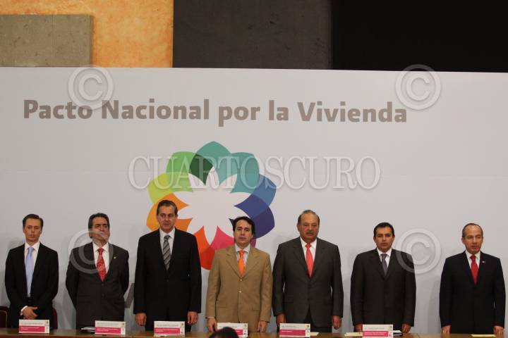 MÉXICO, D.F., 13MARZO2009.- Lorenzo Zambrano, presidente ejecutivo de CEMEX y Felipe Calderón Honojosa, Presidente de México, durante la firma del Pacto Nacional por la Vivienda en la residencia de Los Pinos. FOTO: MOISÉS PABLO/CUARTOSCURO.COM