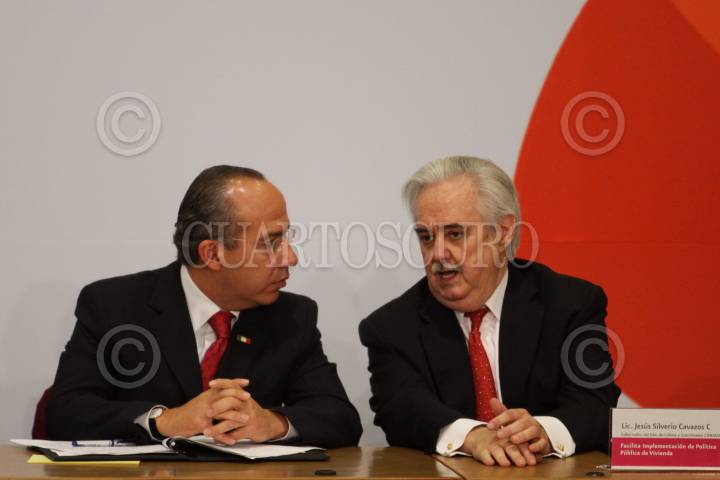 MÉXICO, D.F., 13MARZO2009.- Lorenzo Zambrano, presidente ejecutivo de CEMEX y Felipe Calderón Honojosa, Presidente de México, durante la firma del Pacto Nacional por la Vivienda en la residencia de Los Pinos. FOTO: MOISÉS PABLO/CUARTOSCURO.COM