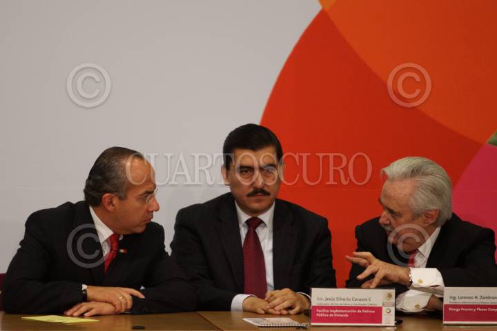 MÉXICO, D.F., 13MARZO2009.- Lorenzo Zambrano, presidente ejecutivo de CEMEX y Felipe Calderón Honojosa, Presidente de México, durante la firma del Pacto Nacional por la Vivienda en la residencia de Los Pinos. FOTO: MOISÉS PABLO/CUARTOSCURO.COM