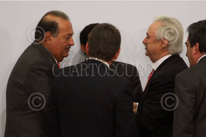 MÉXICO, D.F., 13MARZO2009.- Lorenzo Zambrano, presidente ejecutivo de CEMEX y Felipe Calderón Honojosa, Presidente de México, durante la firma del Pacto Nacional por la Vivienda en la residencia de Los Pinos. FOTO: MOISÉS PABLO/CUARTOSCURO.COM