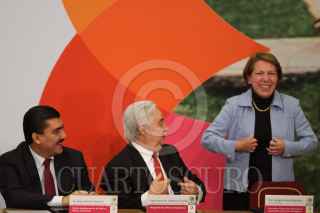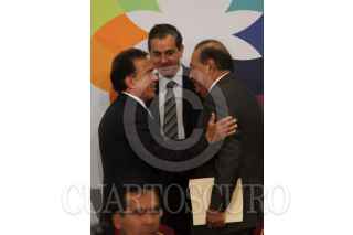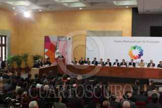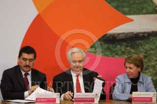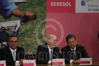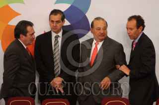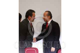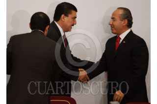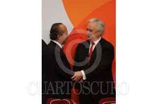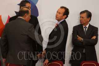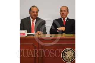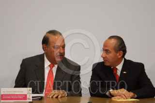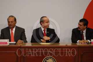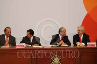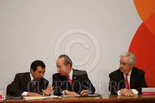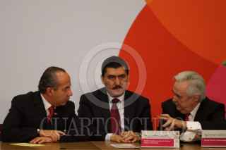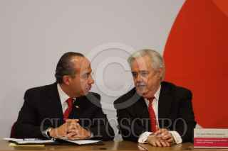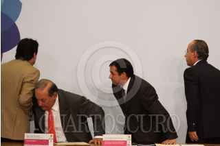 MÉXICO, D.F., 13MARZO2009.- Lorenzo Zambrano, presidente ejecutivo de CEMEX y Felipe Calderón Honojosa, Presidente de México, durante la firma del Pacto Nacional por la Vivienda en la residencia de Los Pinos. FOTO: MOISÉS PABLO/CUARTOSCURO.COM