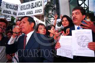 Los diputados perredistas, Emilio Serrano, Dione Anguiano y Alfredo Hernández, muestran el acuerdo para evitar abusos en el cobro de energía eléctrica, firmado por la secretaría de Energía y Luz y Fuerza del Centro. Aseguraron que se buscará la derogación del decreto del 12 de febrero, que eliminó el subsidio y aumentó las tarifas; además, buscarán que los adultos mayores reciban el 50% de descuento en su recibo. FOTO: Juan Pablo Zamora/CUARTOSCURO.COM