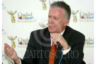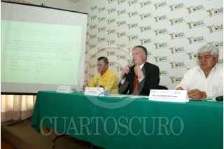 MÉXICO, D.F., 13MARZO2009.- El Director General del Sistema de Aguas del Distrito Federal, Ramón Aguirre, el Coordinador de la Unidad Tormenta, Miguel Ricaño Escobar y el Director Ejecutivo de Operación del SACM, Alejandro Martínez Pérez, en conferencia de prensa donde hablaron sobre la disminución de agua que habrá este fin de semana debido al segundo corte en el suministro de agua potable del Sistema Cutzamala FOTO: IVÁN MÉNDEZ/CUARTOSCURO.COM