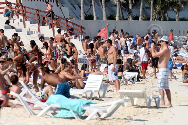 CANCÚN, QUINTANA ROO, 16MARZO2009.- Miles de Jóvenes "Springbreakers" abarrotan las playas de Cancún, durante este inicio de primavera. FOTO: AMARANTA PRIETO/CUARTOSCURO.COM