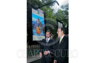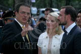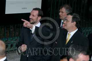 MÉXICO, D.F., 16MARZO2009.- Marcelo Ebrard jefe de gobierno del Distrito Federal y el príncipe Haakon de Noruega, durante la inauguración fotográfica "Noruega -impulsada por la naturaleza" que es expuesta en las rejas de Chapultepec de la avenida Paseo de la Reforma, durante las actividades del primer día de su visita a México FOTO: RICARDO CASTELAN/CUARTOSCURO.COM