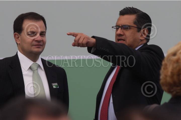 MÉXICO, D.F., 17MARZO2009.- Margarita Zavala primera dama saluda a Felipe Calderon presidente de México a su llegada para la entrega de ambulacias de la cruz roja y arranque de la colecta nacional 2009. FOTO: SÁSHENKA GUTIÉRREZ/CUARTOSCURO.COM