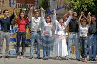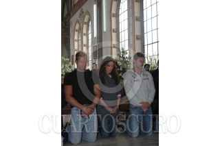 JILOTEPEC, ESTADO DE MÉXICO, 17MARZO2009.- Los actores Gabriel Soto, Jacqueline Bracamontes y William Levy durante la misa que se realizo antes de empezar las grabaciones de la nueva telenovela de Televisa que lleva por nombre Sortilegio. FOTO: RICARDO CASTELAN/ CUARTOSCURO.COM
