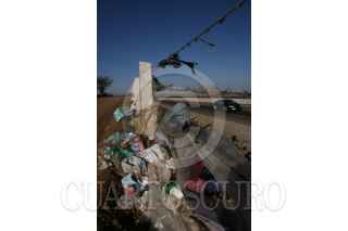 VILLA DE COS, ZACATECAS, 03ENERO2008.- Sobre la carretera Zacatecas-Saltillo, en el kilómetro 35, un tiradero clandestino. En la zona se deja la basura de pueblos cercanos, lo que ha convertido el lugar en un foco de contaminación. FOTO: MISAEL VALTIERRA/CUARTOSCURO.COM