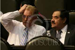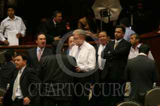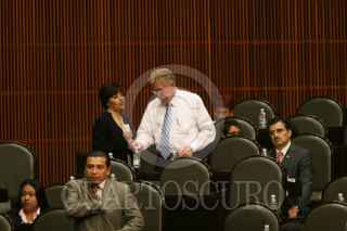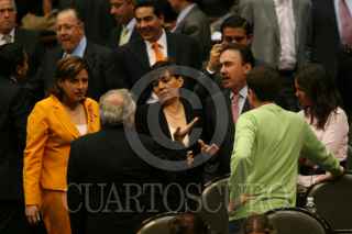 MEXICO D.F., 19MARZO2009.- La diputada Marina Arvizu del PSD, acompañada del diputado del PRI, Emilio Gamboa Patrón, dialogan con el diputado del PAN, Juan José Rodríguez Prats, durante la sesión ordinaria en la Cámara de Diputados, donde se acepto la modificación de tres párrafos a la minuta que mando el senado al articulo 33 de la ley de Salud. FOTO: GUILLERMO PEREA/CUARTOSCURO.COM