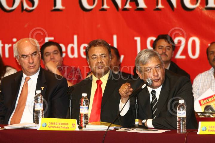 MÉXICO, D.F., 19MARZO2009.- El ex-candidato presidencial Andres Manuel López Obrador y el senador Dante Delgado a su salida de su participación del XIII seminario internacional del Partido del Trabajo, denominado "Los Partidos y la Nueva Sociedad" FOTO: SAÚL LÓPEZ/CUARTOSCURO.COM