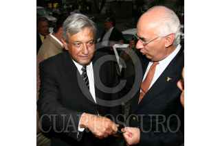 MÉXICO, D.F., 19MARZO2009.- El ex-candidato presidencial Andres Manuel López Obrador y el senador Dante Delgado a su salida de su participación del XIII seminario internacional del Partido del Trabajo, denominado "Los Partidos y la Nueva Sociedad" FOTO: SAÚL LÓPEZ/CUARTOSCURO.COM