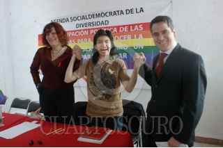 MÉXICO, D.F., 20MARZO2009.- Gloria Hazel Devenport y su compañera de formula Leks García asi como Alvaro Velarca en la conferencia de prensentacion de candidatos de la diversidad del PSD en el D.F. FOTO: VICTORIA VALTIERRA/CUARTOSCURO.COM