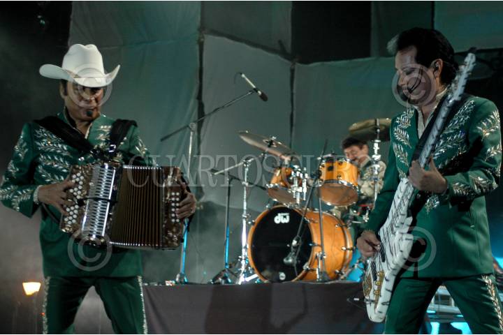 PAPANTLA, VERACRUZ, 20MARZO2009.- El grupo mexicano de música norteña Los Tigres del Norte, tocaron en concierto esta noche ante cientos de personas como parte de las actividades de Cumbre Tajín 2009 que se realiza en el parque temático Takilhsukut del 18 al 22 de marzo. FOTO: RODOLFO ANGULO/CUARTOSCURO.COM