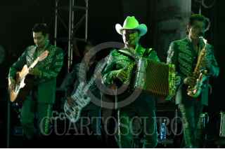 PAPANTLA, VERACRUZ, 20MARZO2009.- El grupo mexicano de música norteña Los Tigres del Norte, tocaron en concierto esta noche ante cientos de personas como parte de las actividades de Cumbre Tajín 2009 que se realiza en el parque temático Takilhsukut del 18 al 22 de marzo. FOTO: RODOLFO ANGULO/CUARTOSCURO.COM