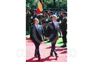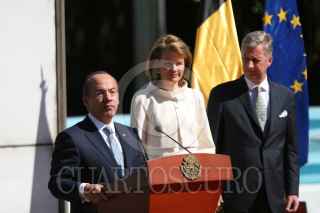 MÉXICO D.F., 23MARZO2009.- Felipe Calderón Hinojosa, Presidente de México, acompañado de su esposa Margarita Zavala, dio la bienvenida en ceremonia oficial a Philippe y Matilhde, príncipes de Bélgica , esto en el Monumento a Francisco I. Madero en la Residencia Oficial de los Pinos FOTO: GUILLERMO PEREA/CUARTOSCURO.COM