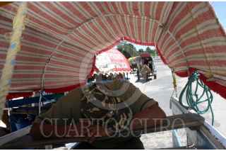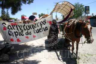 OAXACA, OAXACA, 23MARZO2009.- Los propietarios de 50 carretas tiradas por caballos y/o burros, procedentes del Istmo de Tehuantepec, demandan que la "CONATRAM" (Confederación Nacional de Transportistas Mexicanos A.C.), les cambie el servicio de carga que prestan por permisos para usar taxis, mototaxis y/o camionetas. FOTO: MAX NÚÑEZ/CUARTOSCURO.COM