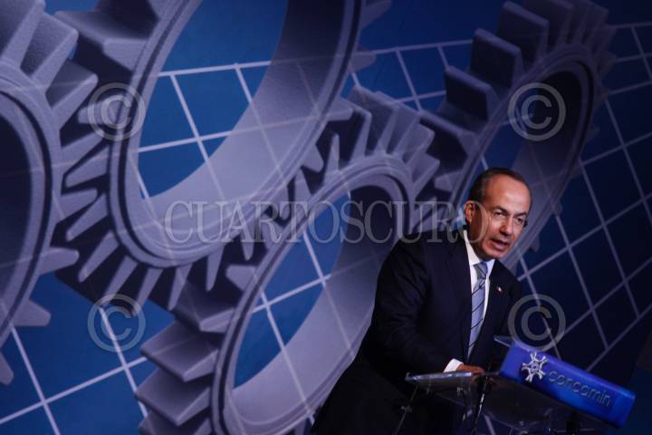 MÉXICO, D.F., 23MARZO2009.- Salomón Presburguer Presidente entrante de la CONCAMIN, Ismael Plascencia Nuñez Presidente Saliente de la confederación de Cámaras Industriales de los Estados Unidos Mexicanos durante la 91 asamblea general ordinaria de la (CONCAMIN) FOTO: SÁSHENKA GUTIERREZ/CUARTOSCURO.COM