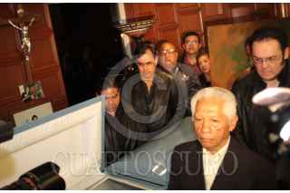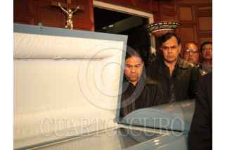 MÉXICO, D.F., 24MARZO2009.- Esta madrugada, amigos y familiares dieron el ultimo adios a Raul "El Raton" Macias, quien perdiera la vida la tarde del día de ayer por un padecimiento de cancer, su velorio se llevó acabo en una agencia funeraria de la colonia Roma, en esta ciudad. En la imágen, familiares del ex boxeador, llevaron una pintural-mural de este personaje para rendirle honores. FOTO: LUZ ACEVEDO/CUARTOSCURO.COM