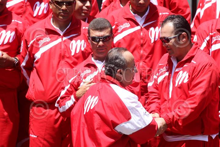 MÉXICO, D.F., 24MARZO2009.- Felipe Calderon Hinojosa Presidente de México platica con jugadores de los Diablos Rojos de Mexico los cuales fueron recibidos por el mandatario en las escalinatas de la residencia oficial de los Pinos al equipo de béisbol Diablos Rojos de México FORO: SÁSHENKA GUTIERREZ/CUARTOSCURO.COM