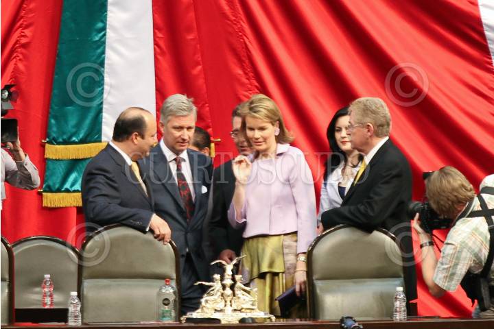 MÉXICO D.F., 24MARZO2009.- El diputado del PRI, Cesar Duarte Jáquez, presidente de la mesa directiva de la Cámara de Diputados, acompañado de Javier González Garza y del Emilio Gamboa Patrón, diputado del PRI, dio la bienvenida en ceremonia oficial a Philippe y Matilhde, príncipes de Bélgica, en la Cámara de Diputados donde realizaron un recorrido por el recinto legislativo. FOTO: GUILLERMO PEREA/CUARTOSCURO.COM