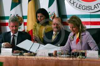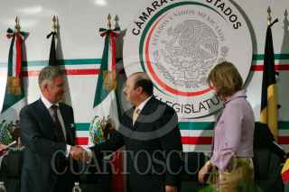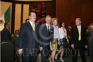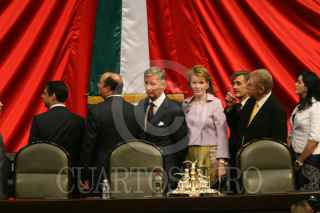 MÉXICO D.F., 24MARZO2009.- El diputado del PRI, Cesar Duarte Jáquez, presidente de la mesa directiva de la Cámara de Diputados, acompañado de Javier González Garza y del Emilio Gamboa Patrón, diputado del PRI, dio la bienvenida en ceremonia oficial a Philippe y Matilhde, príncipes de Bélgica, en la Cámara de Diputados donde realizaron un recorrido por el recinto legislativo. FOTO: GUILLERMO PEREA/CUARTOSCURO.COM