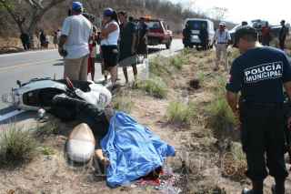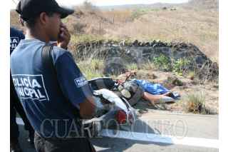 PETATLÁN, GUERRERO, 24MARZO2009.- El jefe de grupo de la policía preventiva de Petatlán, Salvador Guillén Miranda, fué emboscado sobre la carretera federal Acapulco-Zihuatanejo, cuando uniformado se dirijía de su domicilio en la comunidad de Palos Blancos a su cuartel a bordo de una mini moto. Las autoridades locales desconocen el móvil del crimen y el cuerpo del policía presentó dos impactos de bala, uno de ellos en la cabeza. FOTO: CHUY MEZA/CUARTOSCURO.COM
