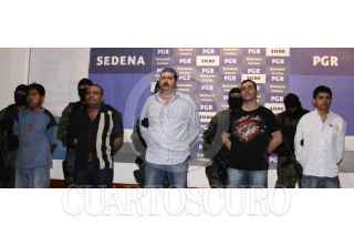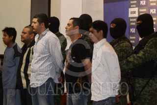 MÉXICO, D.F., 25MARZO2009.- En la Subprocuraduría de Investigaciones Especializadas en Delincuencia Organizada (SIEDO) se presentó a Héctor Huerta Ríos, alias La Burra quien fue arrestado la tarde de ayer por militares, acusado de ser el principal operador del cártel de los Beltrán Leyva , también fueron arrestados sus cuatro guardaespaldasbque responden a los nombres de Manuel Ruperto Martínez, Gilberto Treviño Herrera,Jorge Barrera ,el lugar teniente de la organizacón Héctor Huerta Ríos, Jorge Barrera Lozano y José Donato Bustos FOTO:SÁSHENKA GUTIÉRREZ/CUARTOSCURO.COM