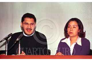 Martí Batres, cordinador del PRD en la Cámara de Diputados, junto con la diputada del PRD Miroslava García, ofrecierón una conferencia de prensa, ne donde hablarón sobre la Convocatoria de la Convención Nacional Hacendaria. FOTO: Eunice Adorno/CUARTOSCURO.COM