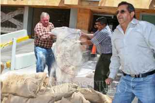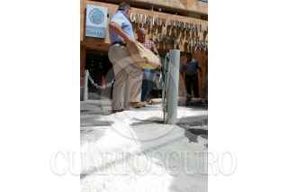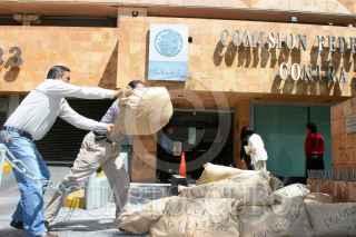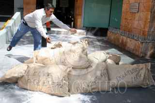 MÉXICO, D.F., 26MARZO2009.- El Frente Nacional de Productores y Consumidores de Leche, que agrupa a ganaderos de 19 estados de la República, se manifestaron a las afueras de de la COFEPRIS (Comisión Federal para la Protección contra Riesgos Sanitarios, de la Secretaría de Salud), donde tiraron bultos de leche adulterada que según ellos y su dirigente Albaro Gonzales Muños, entra al país sin control y se distribuye para su comercialización, con el consecuente riesgo para la salud de los consumidores FOTO: RICARDO CASTELAN/CUARTOSCURO.COM
