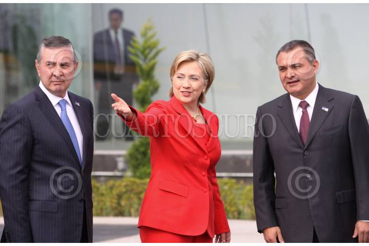 MÉXICO, D.F., 26MARZO2009.- Hillary Clinton, Secretaria de Estado Norteamérica y Genaro García Luna, Secretario de Seguridad Pública Federal, realizaron un recorrido en el Centro de Alto Mando de la Policía Federal, ahí le mostraron a la funcionaria estadounidense los helicópteros Tomahawk que acaban de adquirir para el combate a el crimen organizado. FOTO: MOISÉS PABLO/CUARTOSCURO.COM
