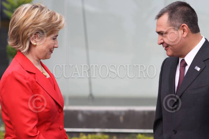 MÉXICO, D.F., 26MARZO2009.- Hillary Clinton, Secretaria de Estado Norteamérica y Genaro García Luna, Secretario de Seguridad Pública Federal, realizaron un recorrido en el Centro de Alto Mando de la Policía Federal, ahí le mostraron a la funcionaria estadounidense los helicópteros Tomahawk que acaban de adquirir para el combate a el crimen organizado. FOTO: MOISÉS PABLO/CUARTOSCURO.COM