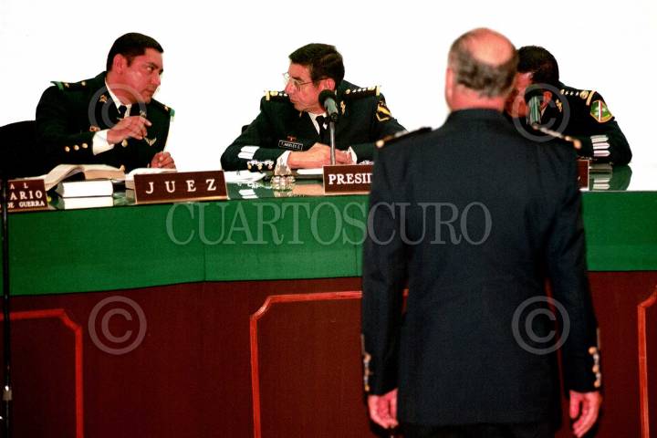Adrián Carrera, testigo protegido durante la audiencia a los militares Acosta Chaparro y Quirós Hermosillo, en el campo Militar No. 1. FOTO: Victoria Valtierra/CUARTOSCURO.COM