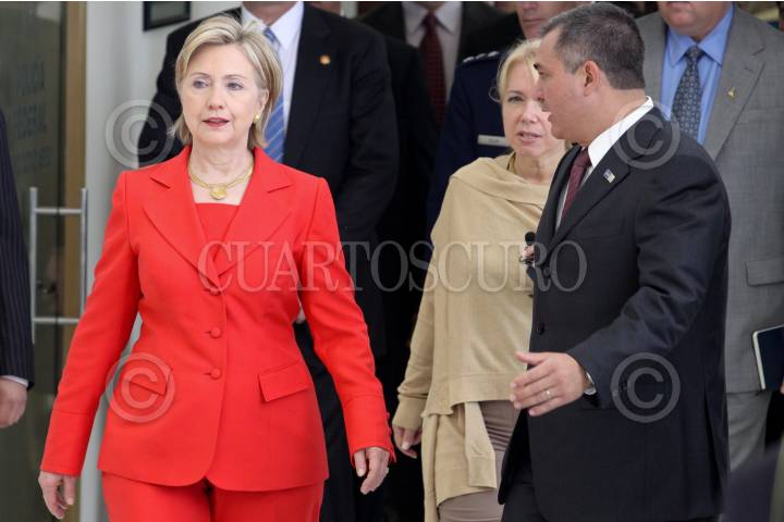 MÉXICO, D.F., 26MARZO2009.- Hillary Clinton, Secretaria de Estado Norteamérica y Genaro García Luna, Secretario de Seguridad Pública Federal, realizaron un recorrido en el Centro de Alto Mando de la Policía Federal, ahí le mostraron a la funcionaria estadounidense los helicópteros Tomahawk que acaban de adquirir para el combate a el crimen organizado. FOTO: MOISÉS PABLO/CUARTOSCURO.COM