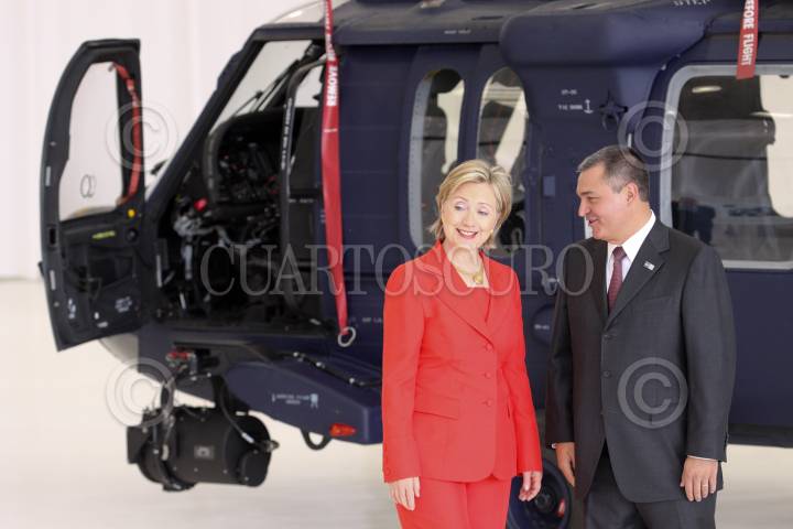 MÉXICO, D.F., 26MARZO2009.- Hillary Clinton, Secretaria de Estado Norteamérica y Genaro García Luna, Secretario de Seguridad Pública Federal, realizaron un recorrido en el Centro de Alto Mando de la Policía Federal, ahí le mostraron a la funcionaria estadounidense los helicópteros Tomahawk que acaban de adquirir para el combate a el crimen organizado. FOTO: MOISÉS PABLO/CUARTOSCURO.COM