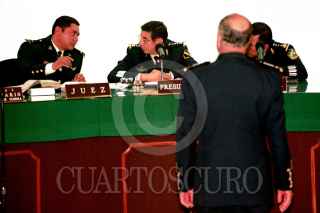 Adrián Carrera, testigo protegido durante la audiencia a los militares Acosta Chaparro y Quirós Hermosillo, en el campo Militar No. 1. FOTO: Victoria Valtierra/CUARTOSCURO.COM