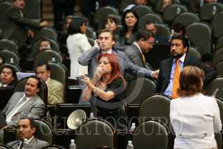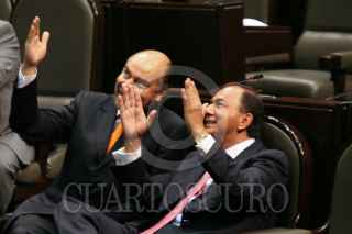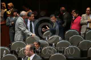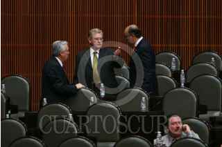 MÉXICO D.F., 26MARZO2009.- Los diputados del PRD, Javier González Garza y Raymundo Cradenas, dialogan con el diputado de Convergencia, Alejandro Chanona, esto durante la sesión ordinaria en la Cámara de Diputados donde uno de los dictamines que se trataron fue sobre la ley de salarios máximos. FOTO: GUILLERMO PEREA/CUARTOSCURO.COM