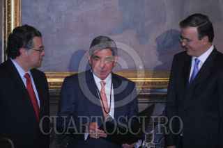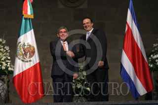 MÉXICO, D.F., 27MARZO2009.- El Jefe de Gobierno, Marcelo Ebrard Casaubon entregó las llaves de la Ciudad, Medalla, Pergamino y declara huésped distinguido al presidente de Costa Rica, Oscar Arias Sánchez, quien estuvo acompañado de su esposa Geovanna Mendiola Sánchez. FOTO: HUGO CRUZ/CUARTOSCURO.COM