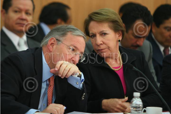 MÉXICO D.F., 27MARZO2009.- Jesus Reyes Heroles director de PEMEX, el gobernador de Veracruz, Fidel Herrera Beltran y Georgina Kessel, Secretaria de Energía durante, la reunión publica de propuestas sobre la localización de la nueva refinería. FOTO: RICARDO CASTELAN/CUARTOSCURO.COM