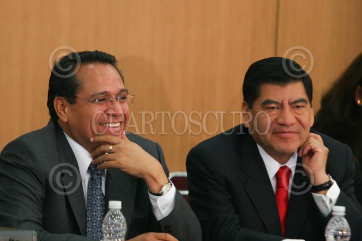 MÉXICO D.F., 27MARZO2009.- Jesus Reyes Heroles director de PEMEX, el gobernador de Veracruz, Fidel Herrera Beltran y Georgina Kessel, Secretaria de Energía durante, la reunión publica de propuestas sobre la localización de la nueva refinería. FOTO: RICARDO CASTELAN/CUARTOSCURO.COM