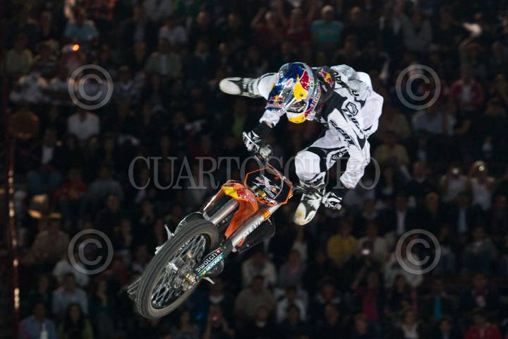 MÉXICO, D.F., 27MARZO2009.- El piloto mexicano Johan Nungaray realiza un salto durante la competencia del Red Bull X Fighters el cual fue descalificado en la primera ronda de la competencia internacional de motorcross estilo libre que se realizo en la plaza de Toros México. FOTO: RODOLFO ANGULO/CUARTOSCURO.COM