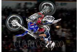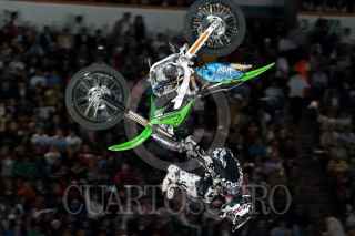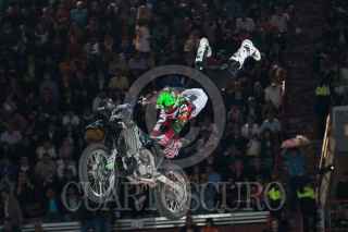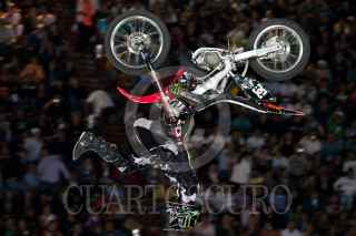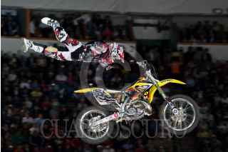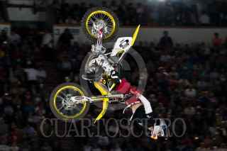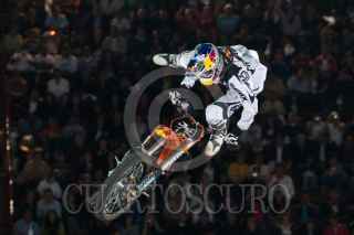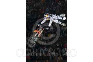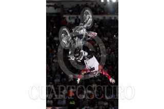 MÉXICO, D.F., 27MARZO2009.- El piloto mexicano Johan Nungaray realiza un salto durante la competencia del Red Bull X Fighters el cual fue descalificado en la primera ronda de la competencia internacional de motorcross estilo libre que se realizo en la plaza de Toros México. FOTO: RODOLFO ANGULO/CUARTOSCURO.COM