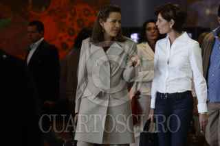 MÉXICO, D.F., 28MARZO2009.- Las primeras damas Margarita Zavala y Geovana Mendiola caminan en el museo de Antropología durante la visita que Oscar Arias hizo durante la visita de estado que realiza FOTO: SÁSHENKA GUTIÉRREZ/CUARTOSCURO.COM